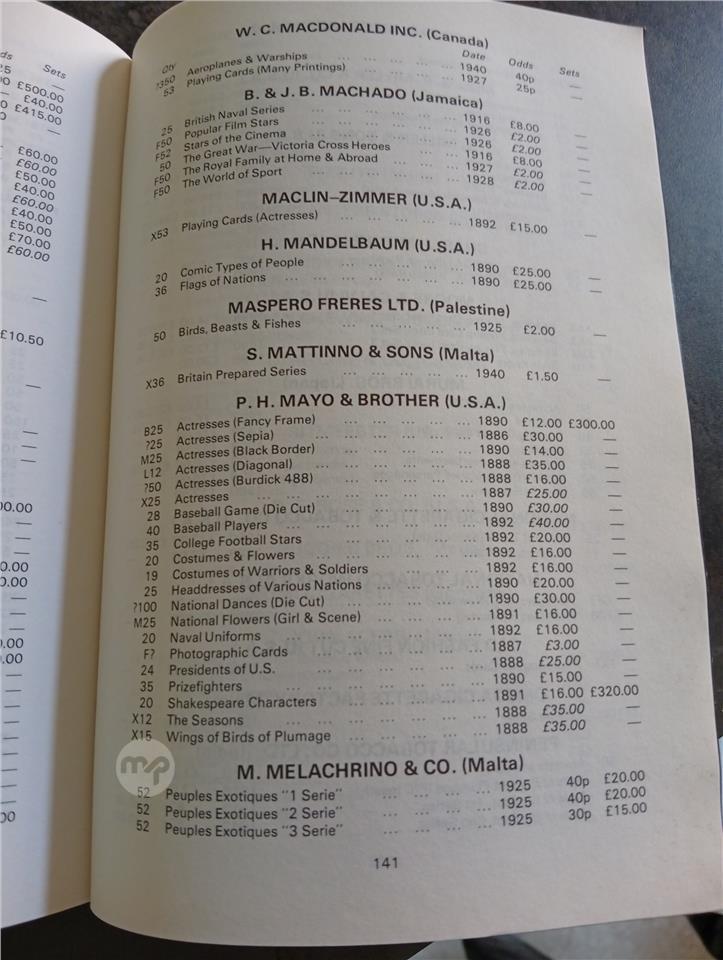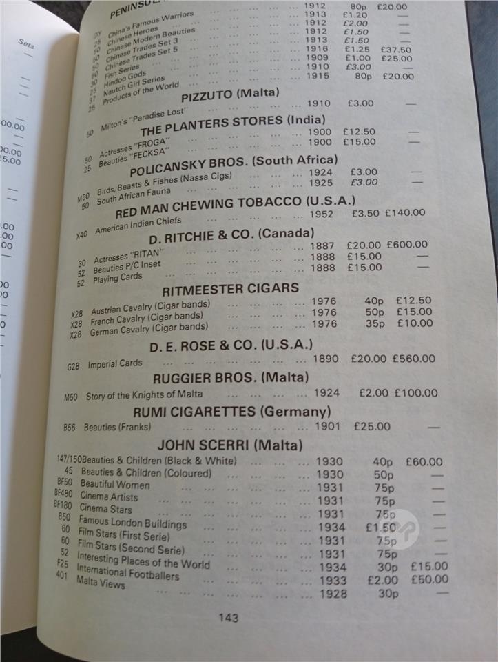 Cigarette Card Values for 1988. Malta