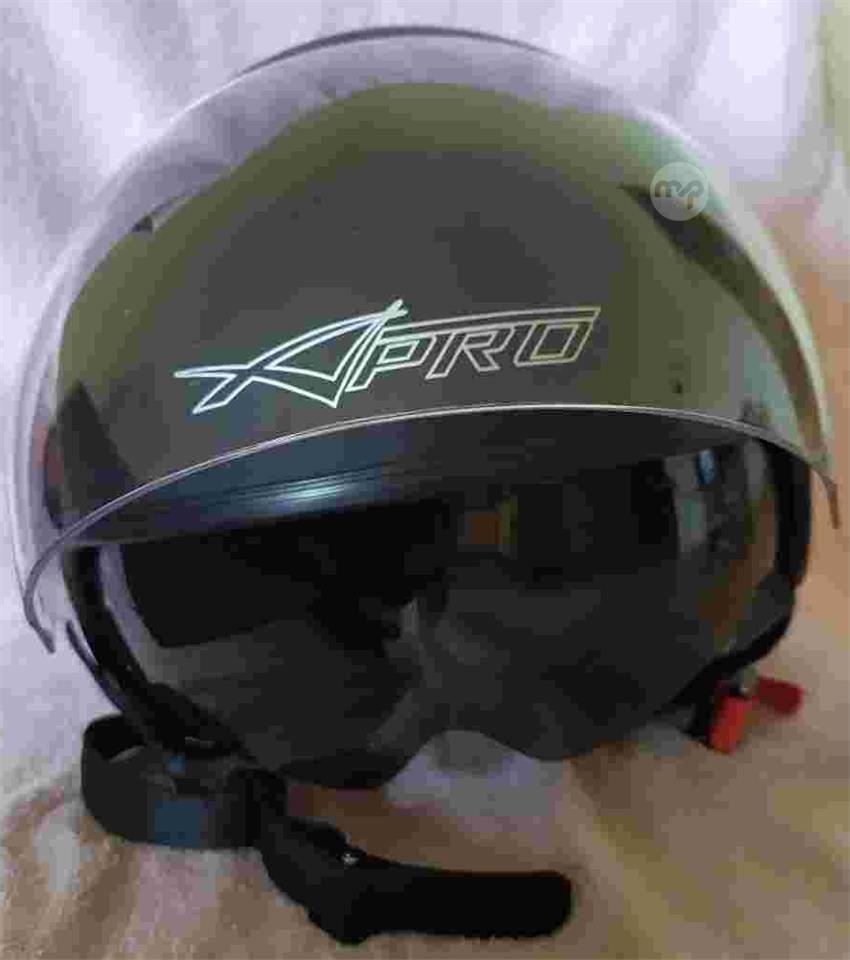 Hardly used black motorbike jet HELMET, ECE 22-05 approved, with retractable visor. adjustable strap, size M (57-58cm), in very good conditions. Always used with a head scarf to keep interior clean. Lady owner.