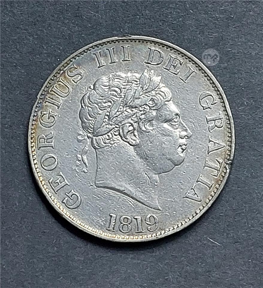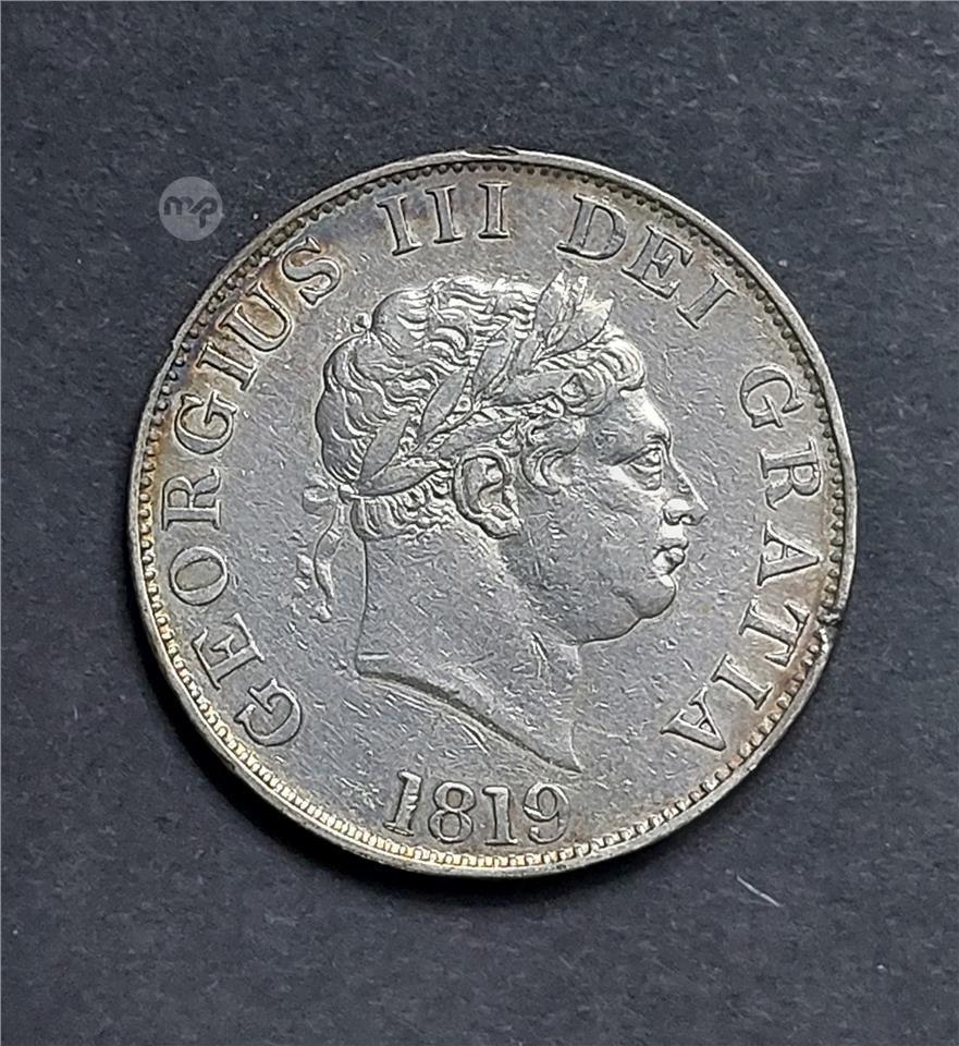 1819 Great Britain, King George III Half Crown 0.925 Sterling Silver Coin.