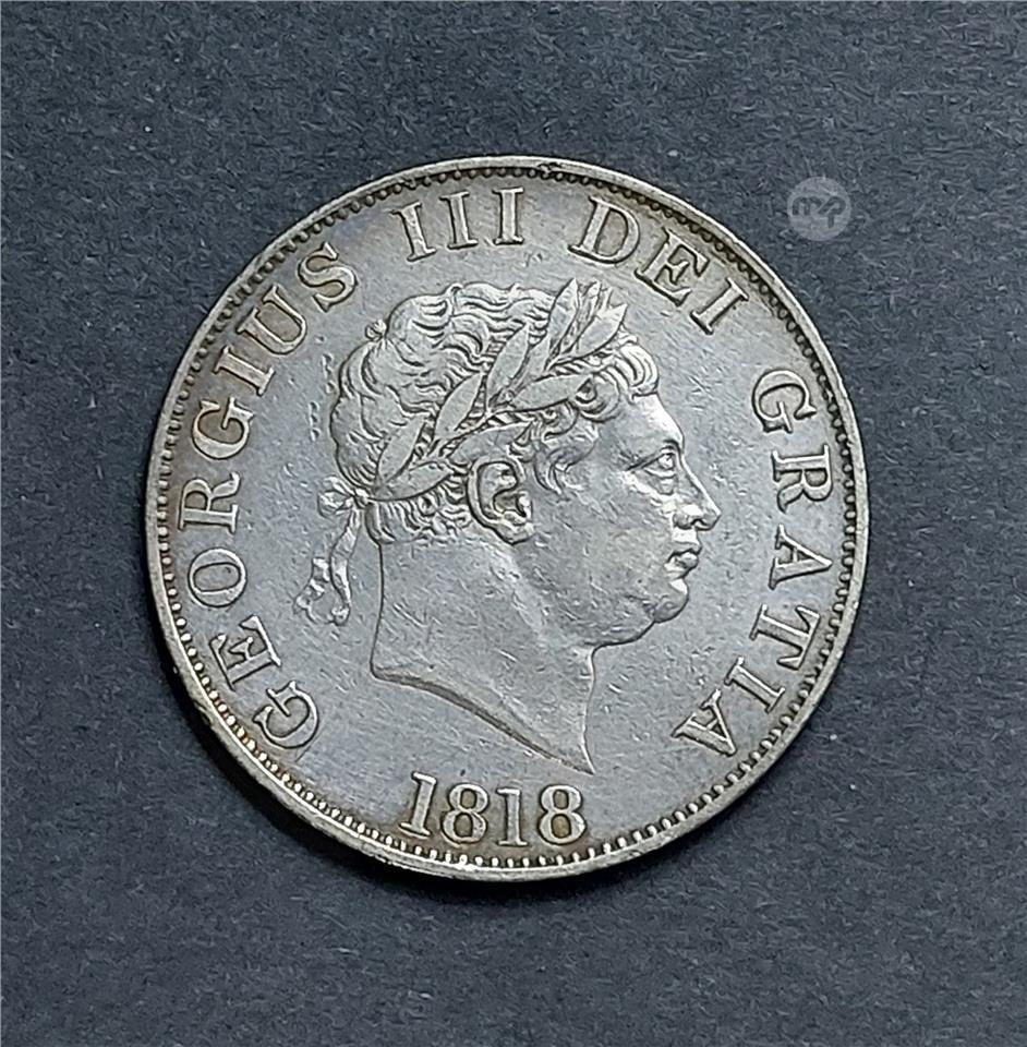 1818 Great Britain, King George III Half Crown 0.925 Sterling Silver Coin.