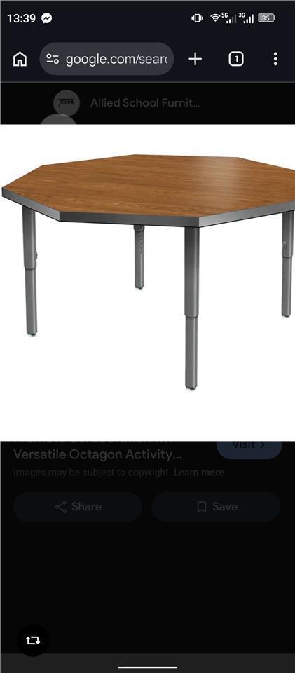 Brown octagon table 1.4 metres in diameter. 99450813