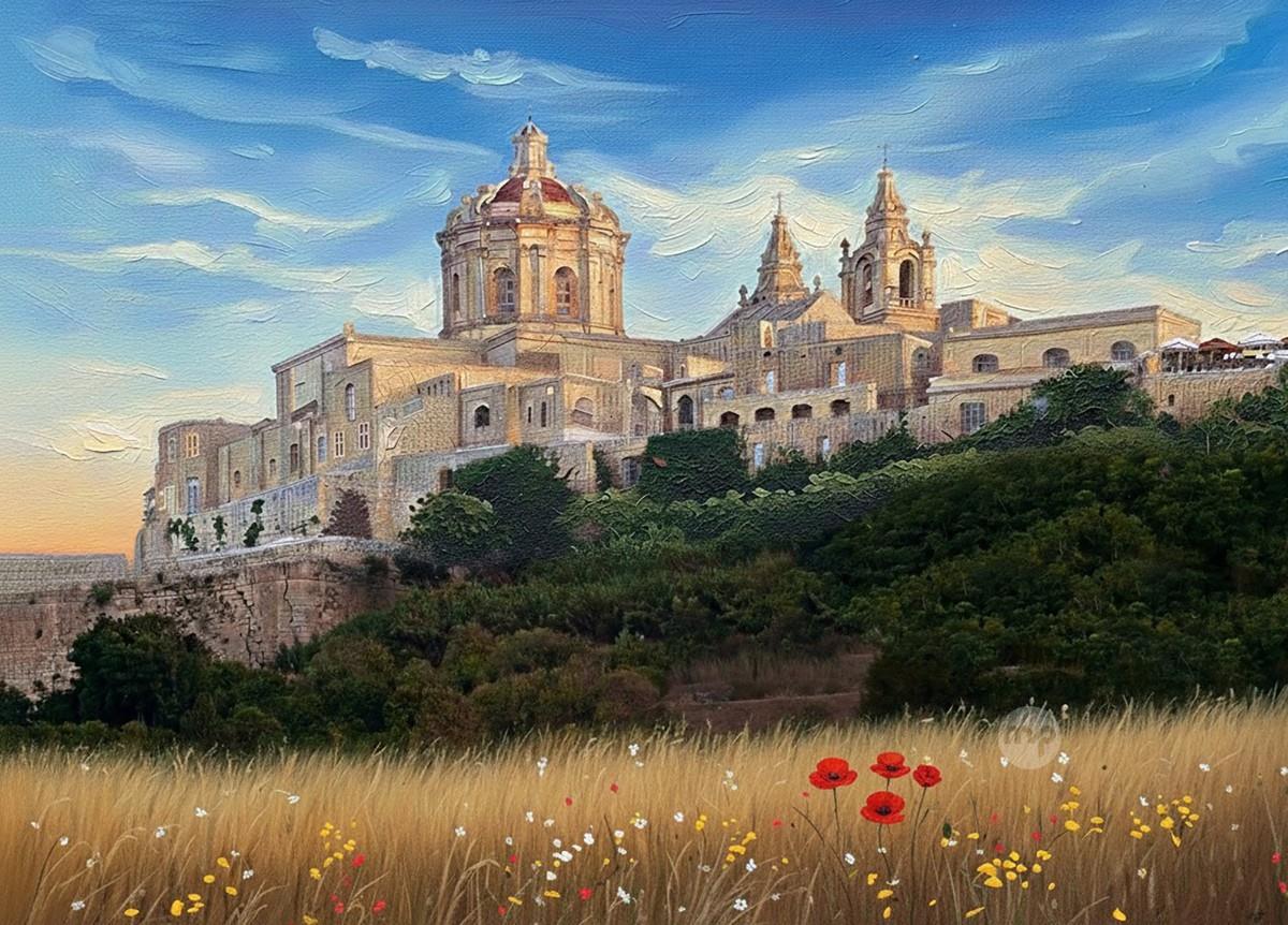 PEACEFUL MDINA MALTA --- ORIGINAL HAND PAINTING OIL ON CANVAS 70X50