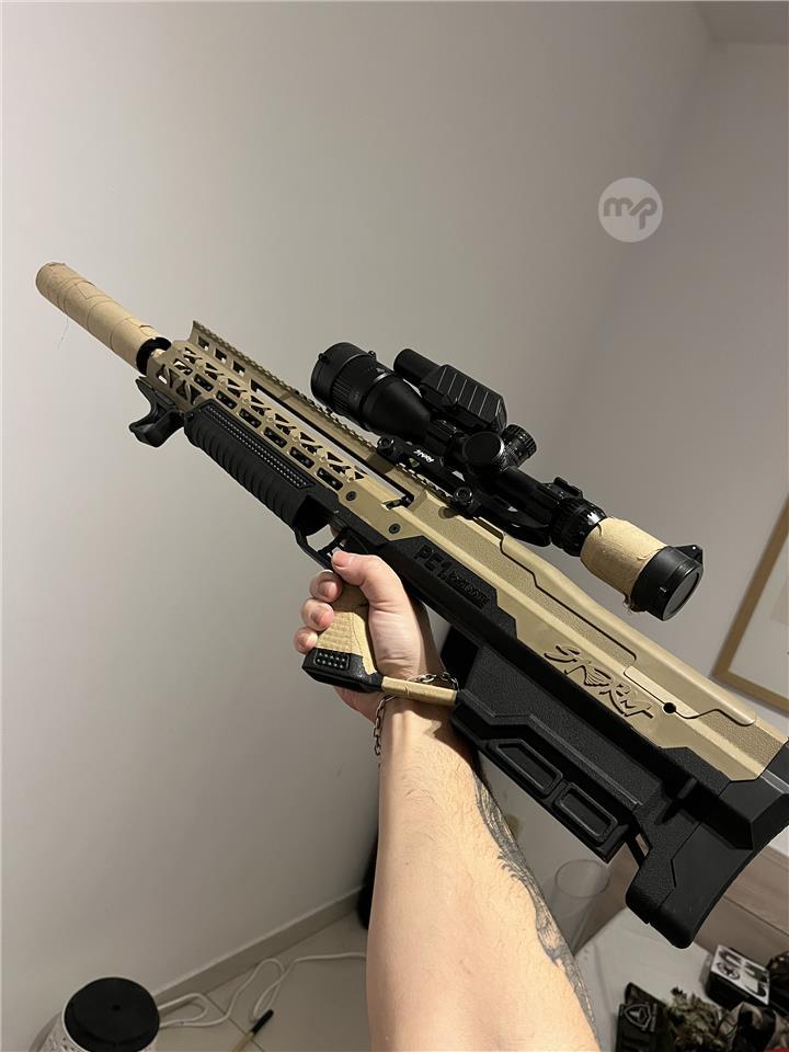 This equipment costs an average of €750. I'm selling it because I've stopped playing Airsoft. It has a pneumatic system, 3 power settings that can be adjusted downward, and is fully upgraded.