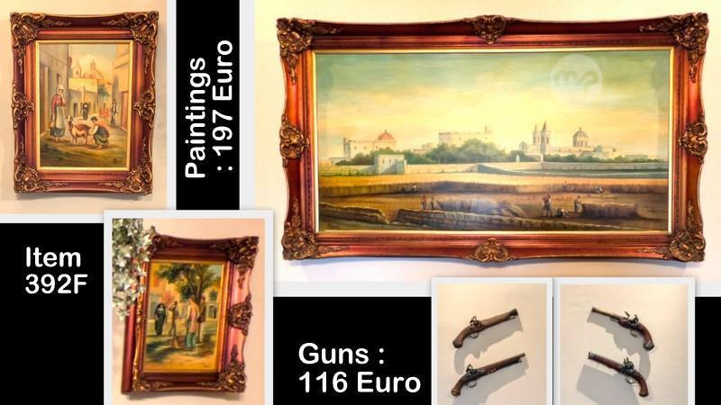 ( 392F ) SET OF PAINTINGS & DECORATIVE GUNS