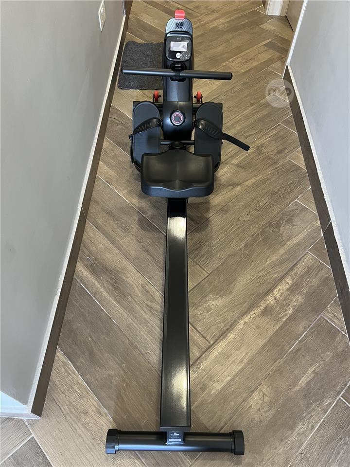 Space-saving foldable rower with smooth action, comfortable seat, transport wheels, and a built-in console with 6 functions. Great for full-body cardio training at home