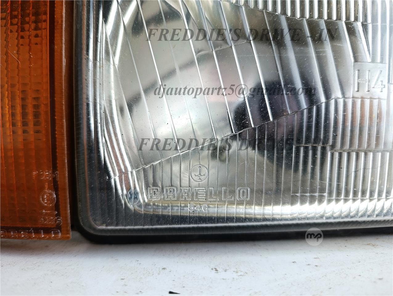 Alfa Giulietta Headlamp and Amber Corner Lamp (approximate era 1976–1986). These secondhand parts are in good condition and are original CARELLO items, suitable for right-hand drive traffic such as in the UK. For further information or to check availability, please send us a private message or call 21445664.