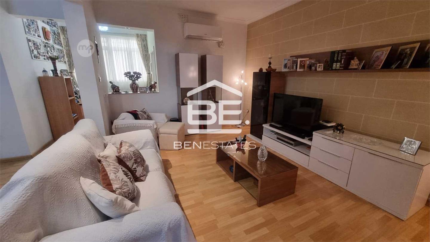 A centrally located 2-Bedroom First Floor Apartment in the heart of Gzira minuets away from promenade, set in a well-kept block and served with a lift, offering a comfortable and practical layout. It features two double bedrooms one with a balcony, a main bathroom, a separate kitchen, and an open-plan living and dining area. This property also includes a study area, storage space, and enjoys high ceilings (2.9m), enhancing the overall sense of space. A standout feature is the ownership of a 42sqm private part of roof, perfect for relaxing or entertaining. And is offered fully furnished and ready to move into.