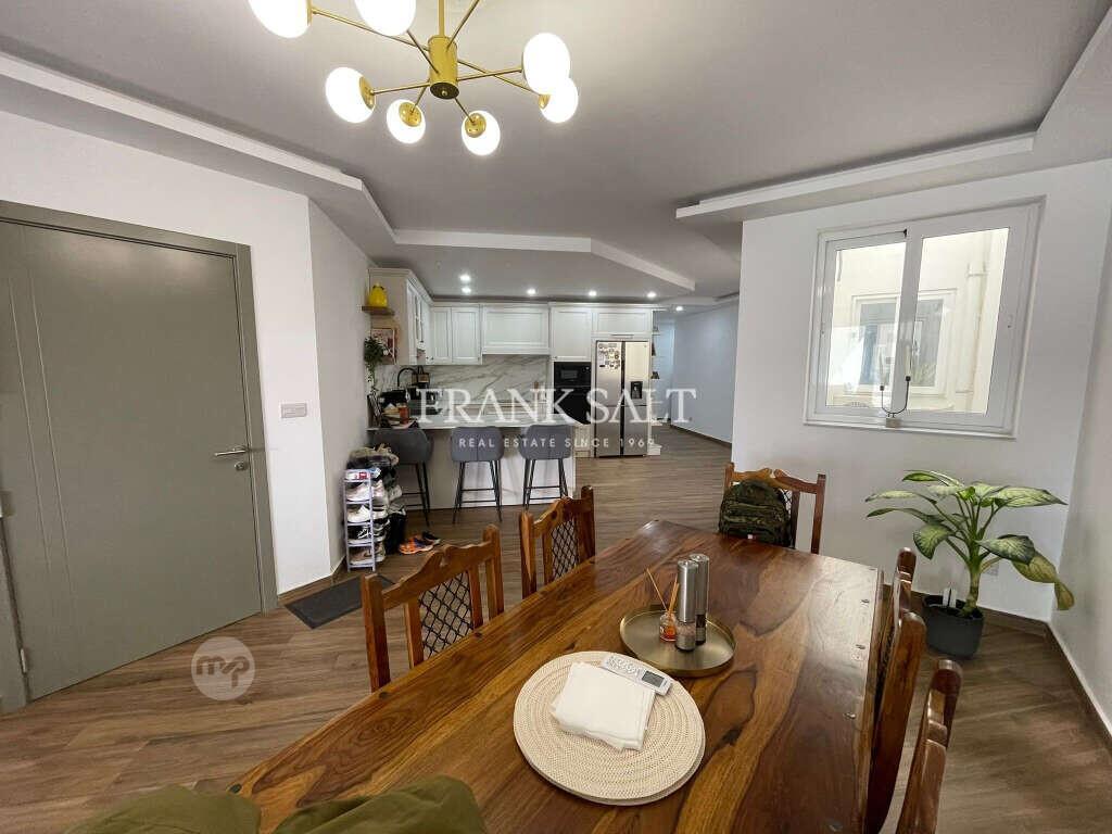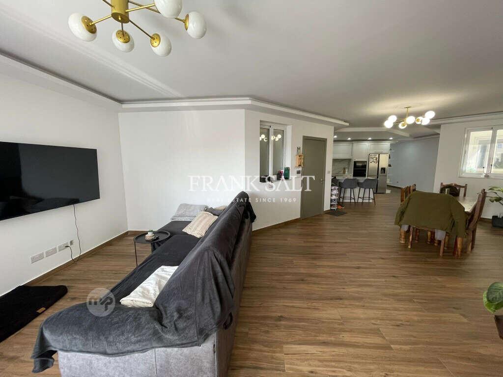 Located in the heart of Mġarr, this recently built apartment forming part of a smart block offers an exceptionally spacious layout with a total area of approximately 220m². Situated on the second floor and served with a lift, the property provides comfortable modern living in a quiet yet central location.Upon entering the property, one is welcomed into a large open-plan kitchen, living, and dining area, designed to maximise natural light and space. This area leads onto a decent-sized balcony, ideal for relaxing or entertaining.The sleeping quarters are well separated and comprise four bedrooms, including a master bedroom with an en-suite bathroom and walk-in wardrobe. The property also features three walk-in wardrobes in total and two bathrooms, offering ample storage and practicality for family living. The third and fourth bedrooms are currently being utilised as a washroom and a home office, but can easily be reverted to bedrooms if desired.This freehold property is located within a modern residential block and offers generous internal space, making it ideal for families, first-time buyers, or as a rental investment.Early viewing is highly recommended.
