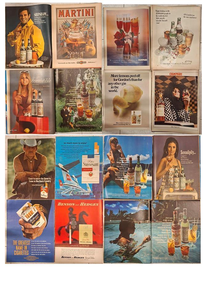 Includes original advertisements from the era featuring drinks, cars, cigarettes, cameras, watches, and more—adding to their charm and historical value.