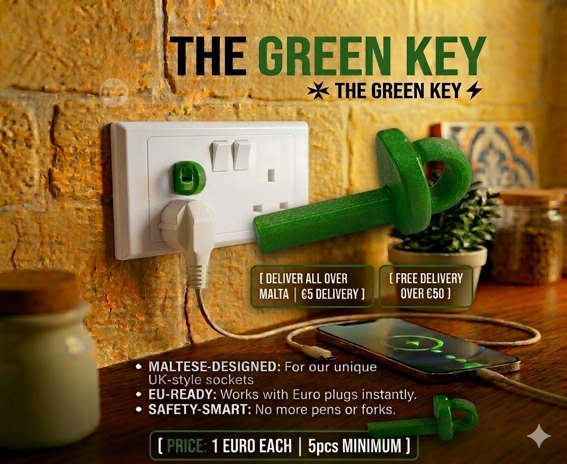 The Green Key is the safest and easiest way to use your Euro plugs in Maltese sockets.