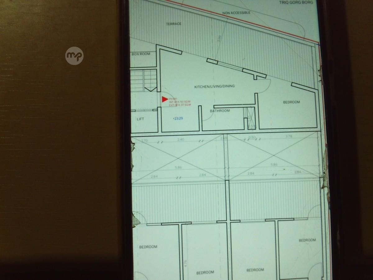 Qormi san bastjan area one bedroom penthouse have good size open plan,bathroom,own airspace and nice terraces with views .This penthouse is finished excluding doors and bathroom including lift