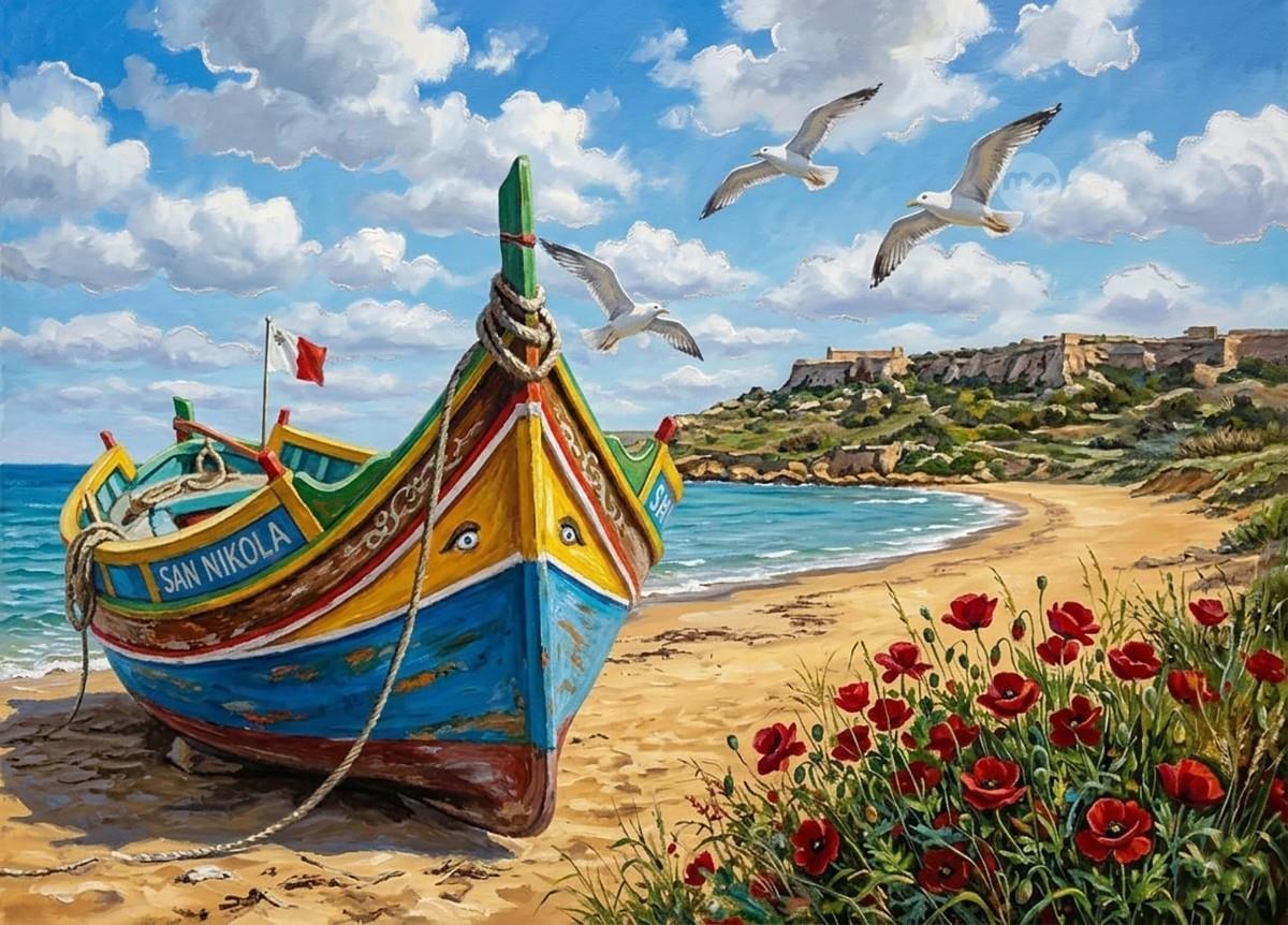IL-LUZZU TAL-GHADIRA MALTA ----- ORIGINAL HAND PAINTING OIL ON CANVAS 70X50
