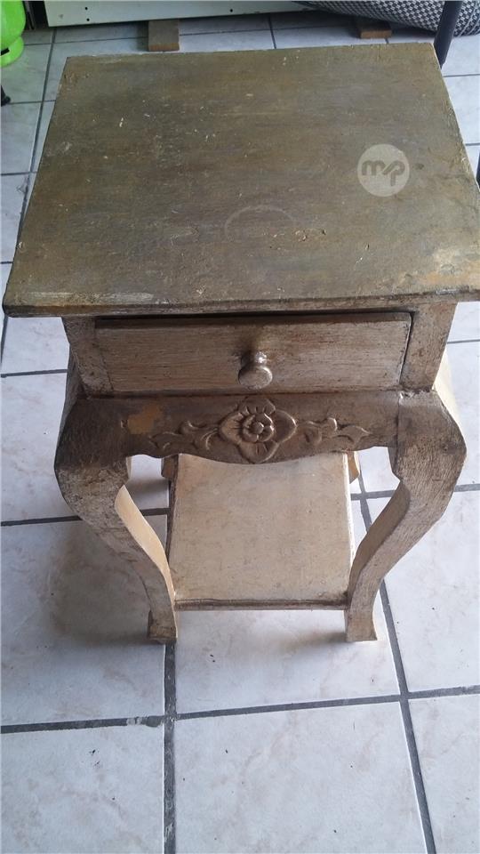 Hand-painted side table features a unique silver and gold color,