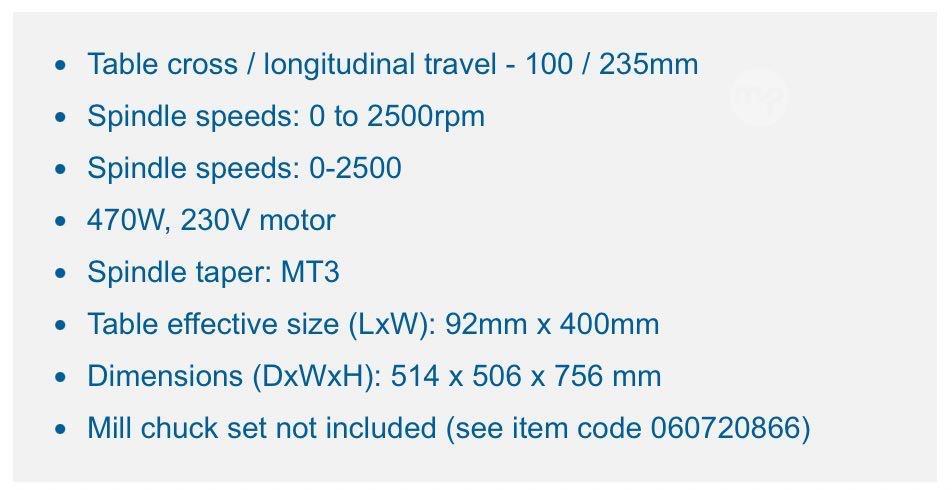 This highly precise milling & drilling machine is ideal for a smaller work shop. It is in excellent condition and comes complete with the original accessories as well as a mill chuck set.