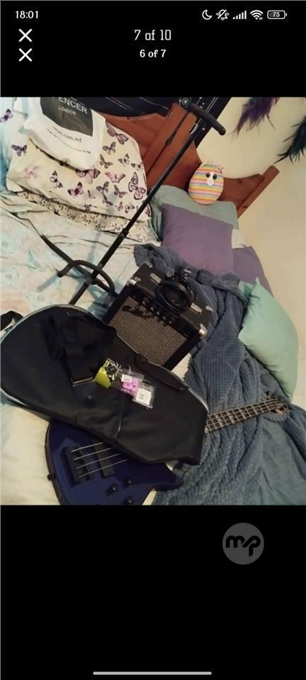 Bass, stand, amp, tuner, plecs, bag...