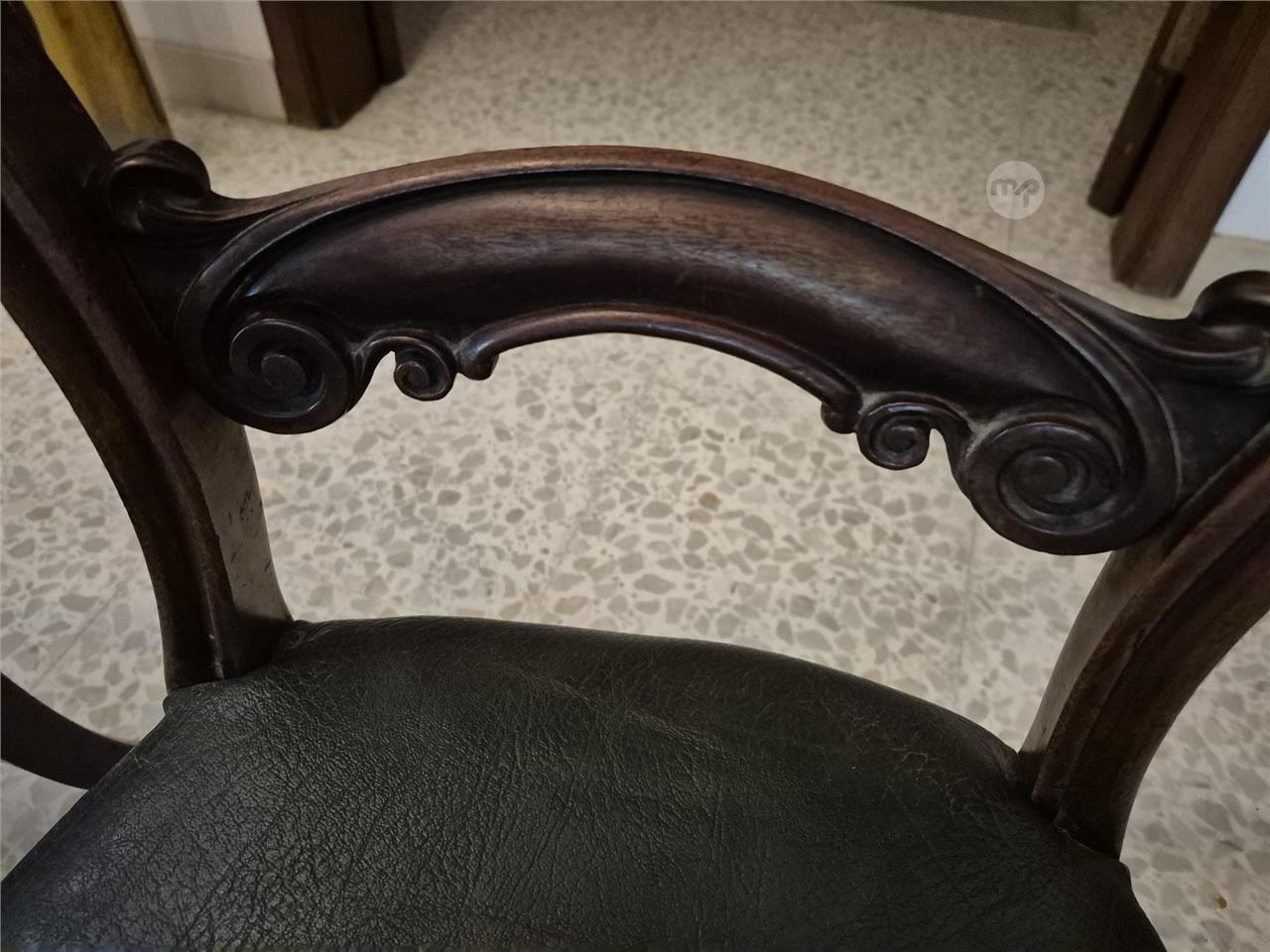 2 very sturdy Victorian Chairs with green seat.