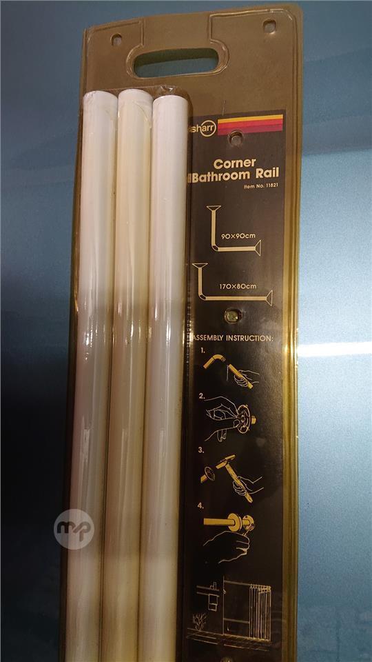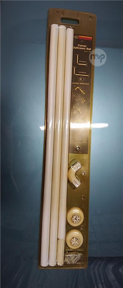 Complete set to fit shower curtain to wall and/or ceiling.