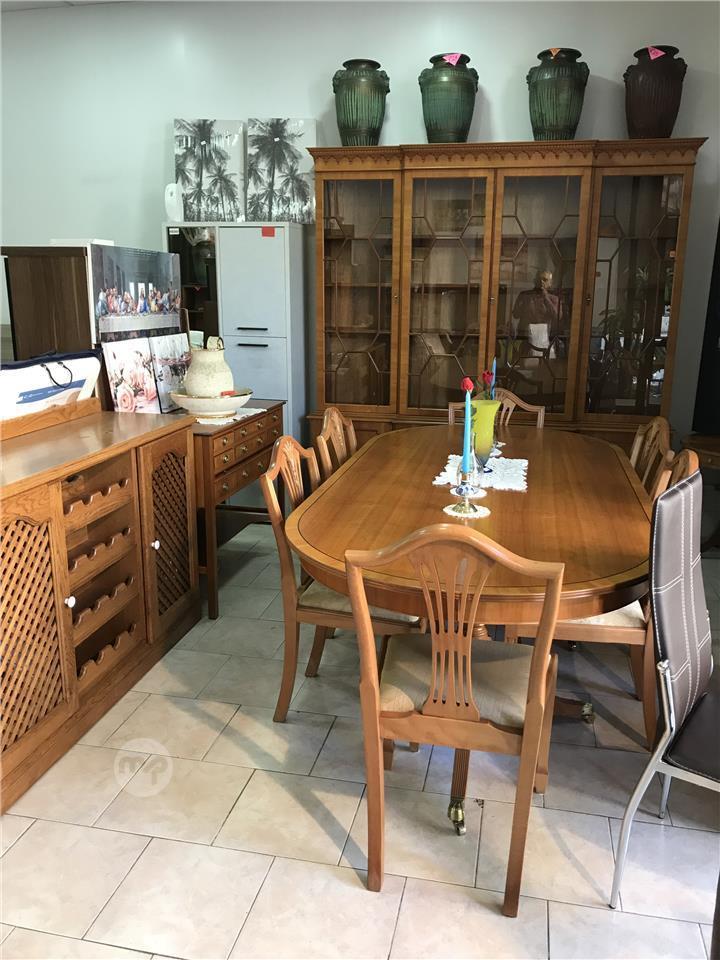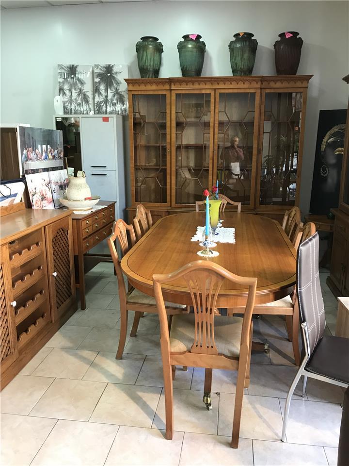 Dinning room consisting of glass cabinet,table and 6 chairs and silver chest