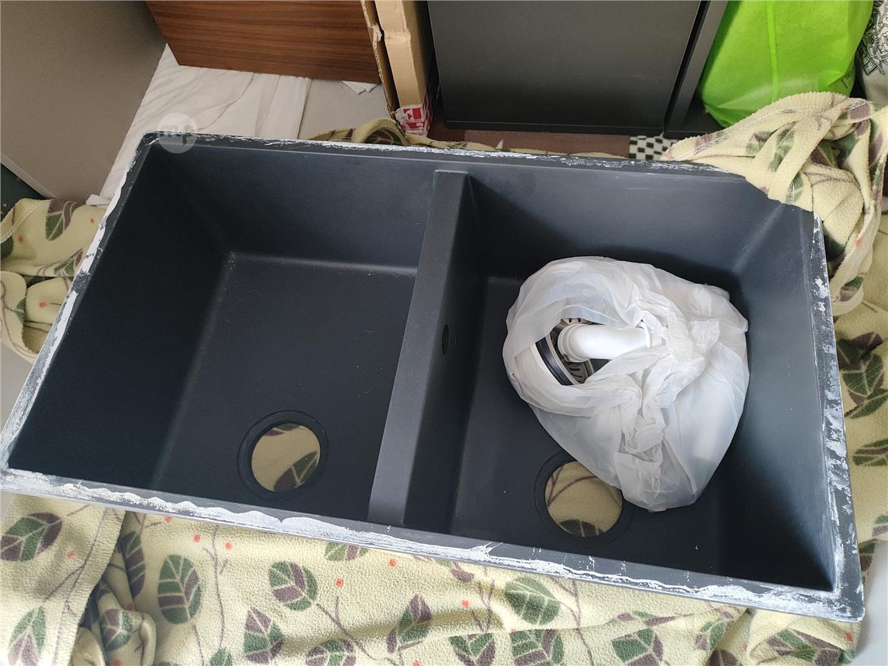 Elleci undermount sink (2 bowl) included — used for a short period and removed due to a change in the kitchen worktop. Some sealer residue present, easily removable.