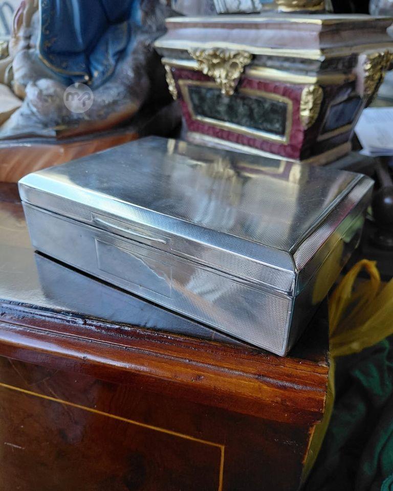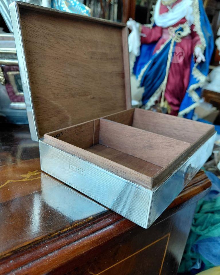 An old STERLING SILVER wood lined cig/jewellery box