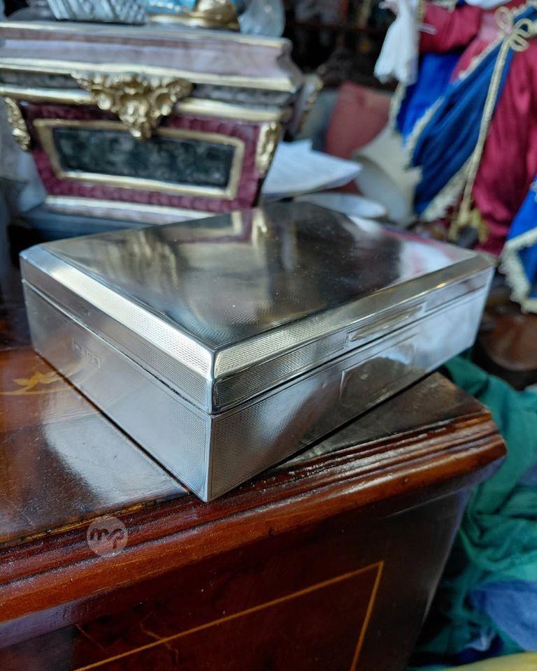 An old STERLING SILVER wood lined cig/jewellery box Still in perfect condition