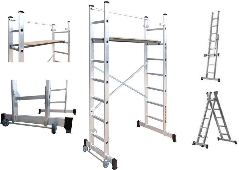 Scaffold / Ladder - 2 x 7 steps 3m reach - made in the EU - c/w: platform & 2 wheels