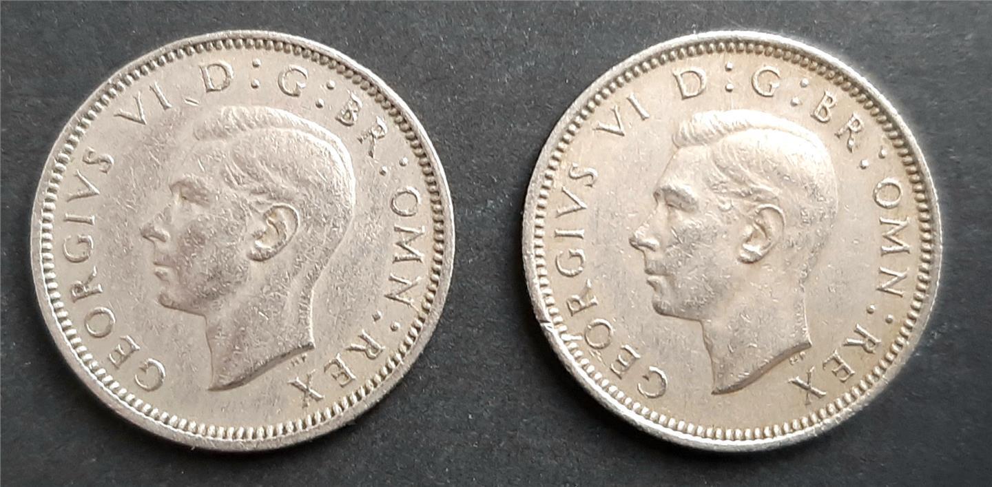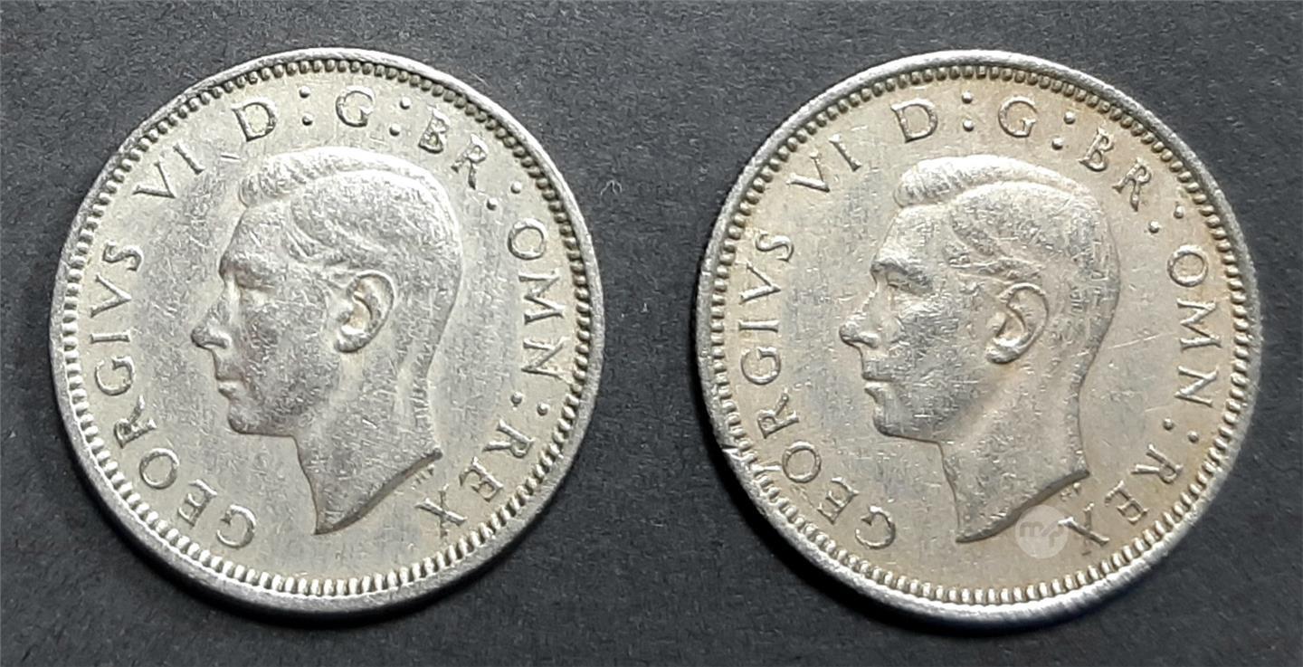 2 KING GEORGE VI SIXPENCE COINS dated 1951 and 1952 (LOWEST MINTED)