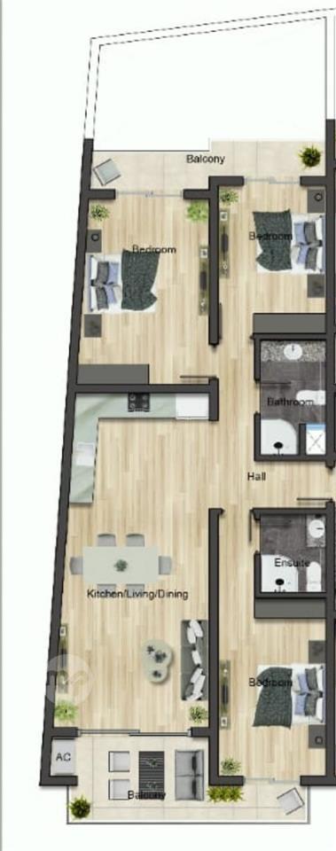 2 Bedrooms + Study/ 2 Bathrooms