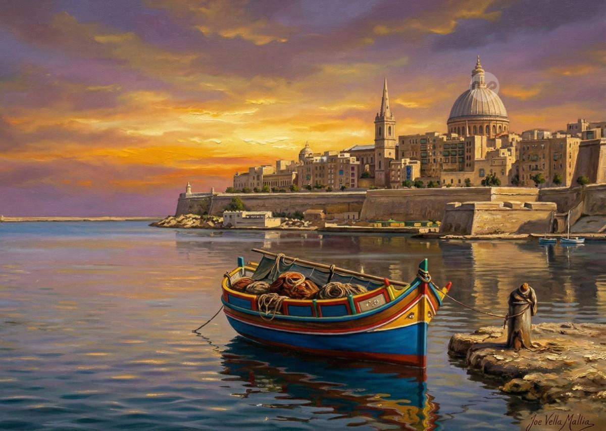 TWILIGHT ON MARSAMXETT MALTA ---- ORIGINAL HAND PAINTING OIL ON CANVAS 70X50