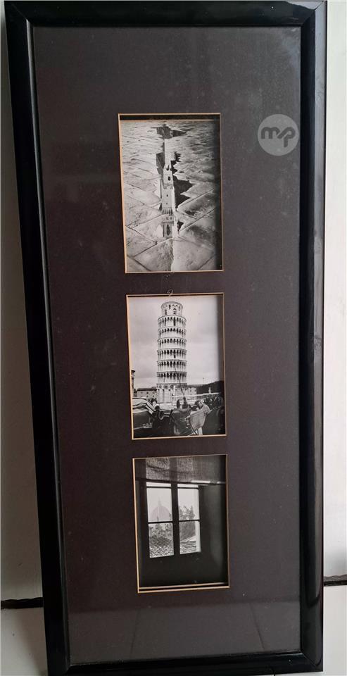 Black and white images of Italy in a black frame measuring 28cms x 65 cms.