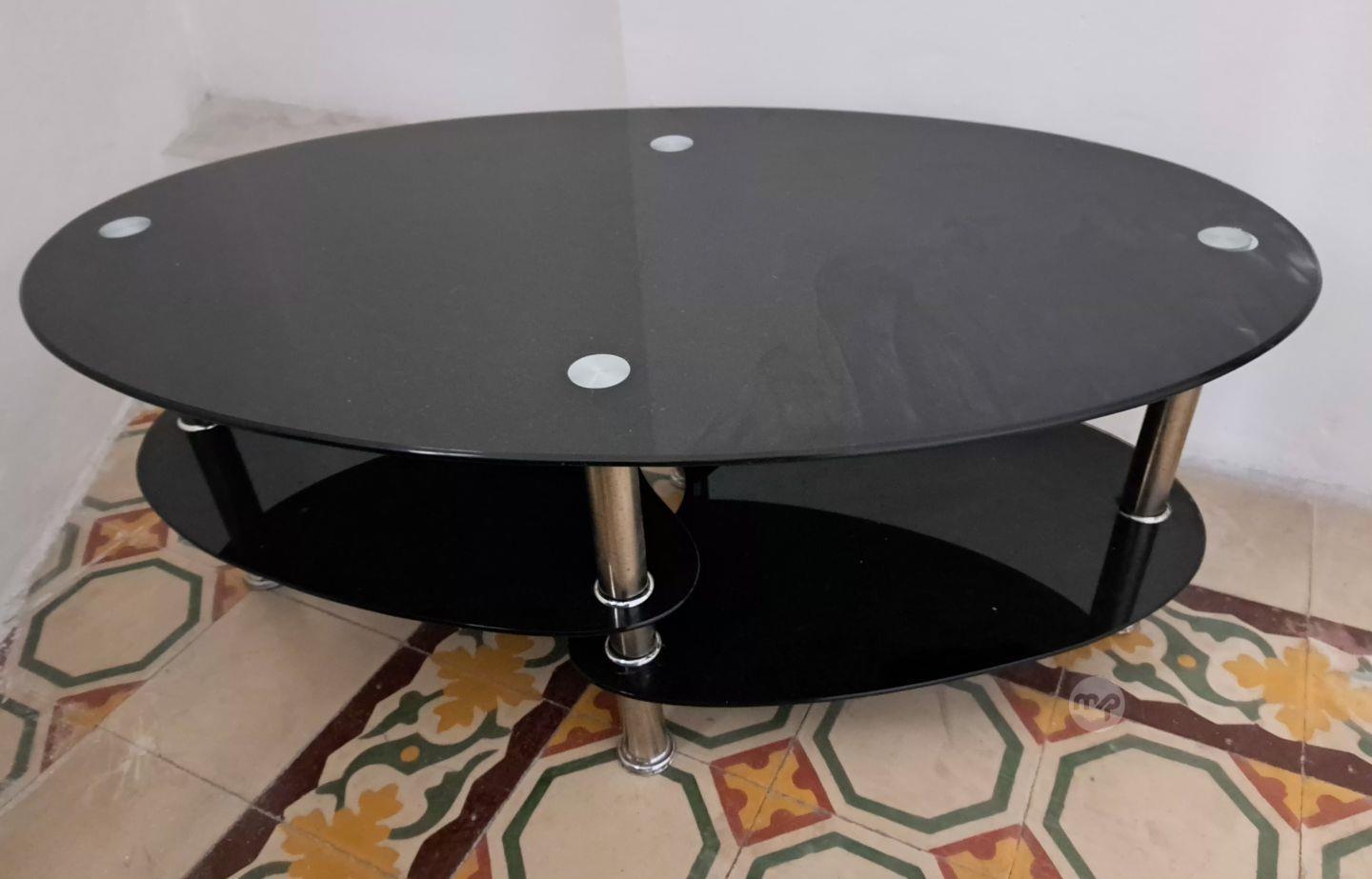 Black glass coffee table. Transport arrangements must be made by the buyer.