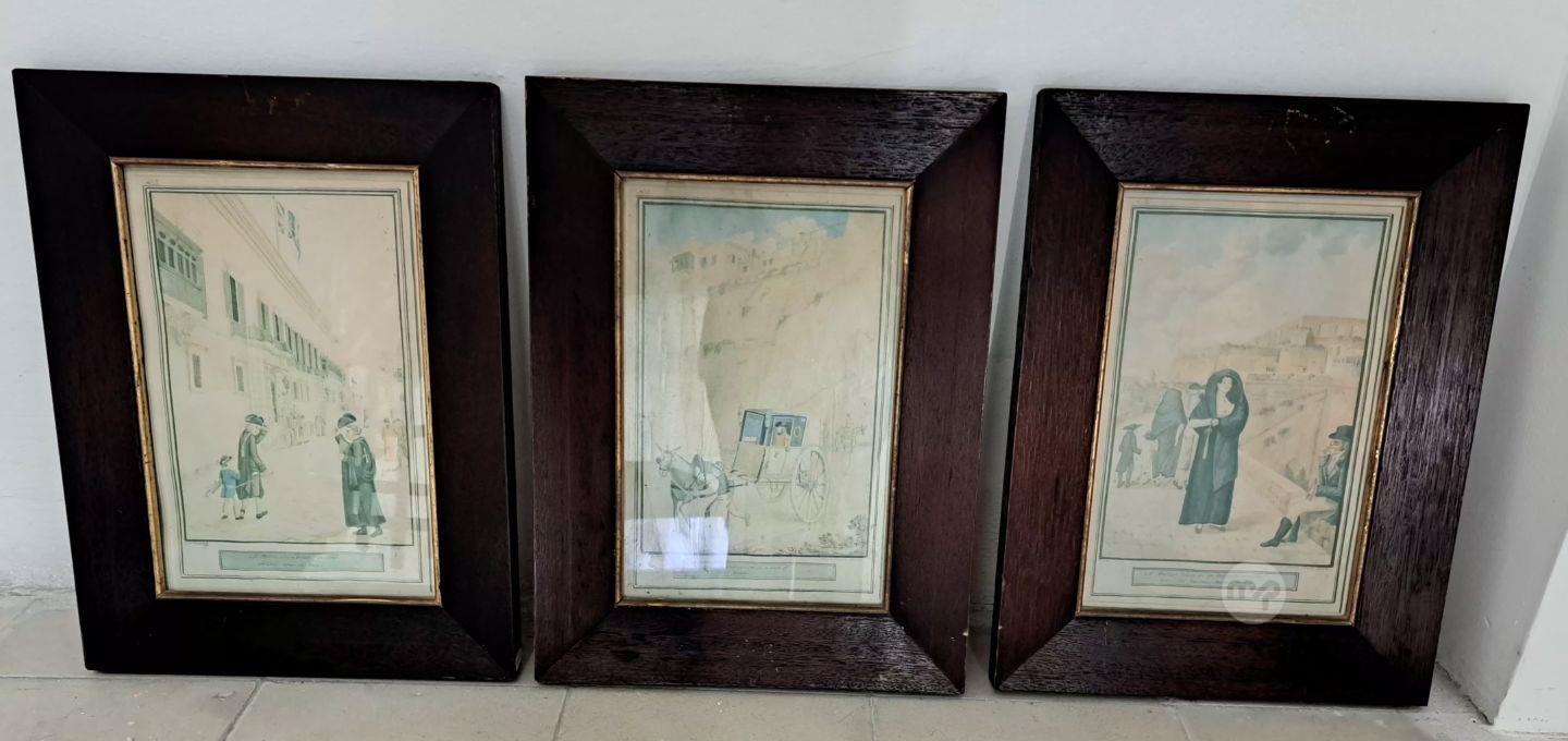 A set of 6 framed pictures depicting Malta in the past. Eur 50 for the set.