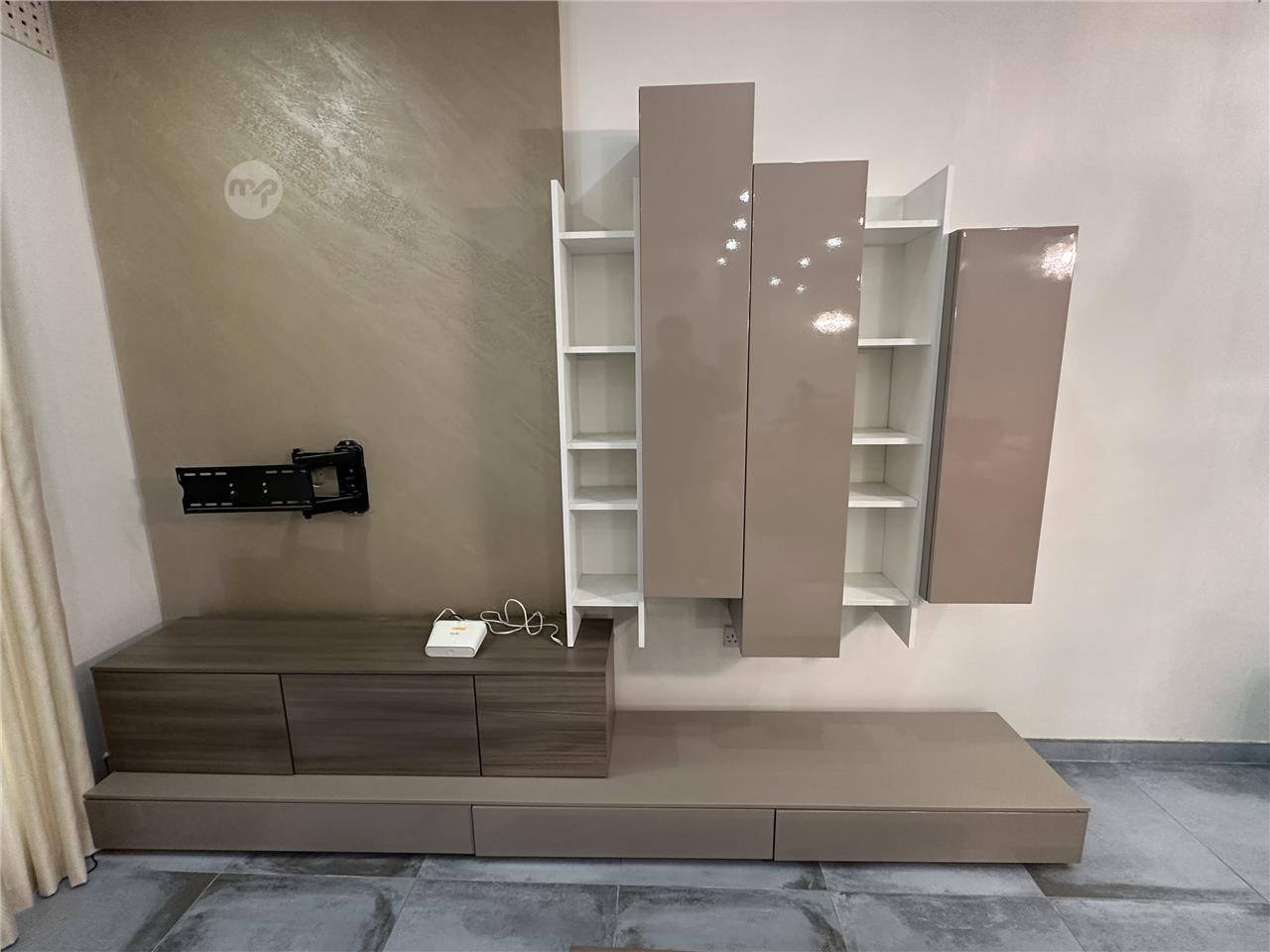 Elegant Febal wall unit in a stylish beige and brown finish, perfect for a modern living room or dining area. High-quality Italian design offering both practicality and a refined look.