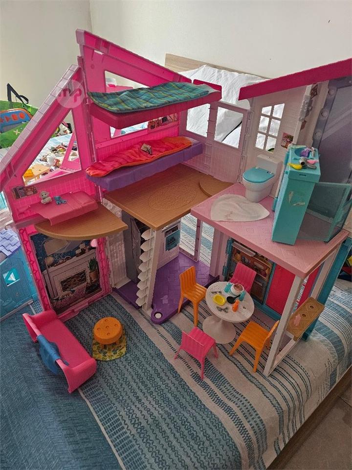 Barbie Malibu House: 2-story foldable house with 6 rooms and original furniture (dining set, toilet, bed).