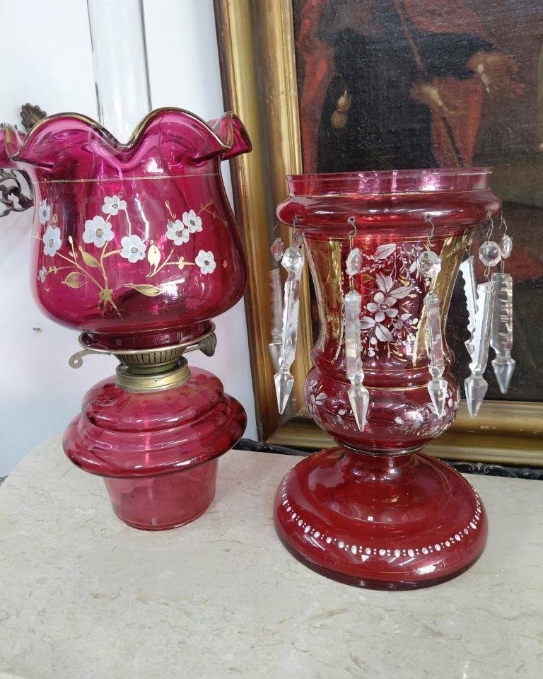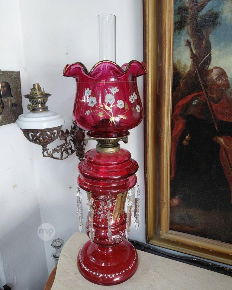 A Large Antique Red Cranberry glass Paraffin lamp