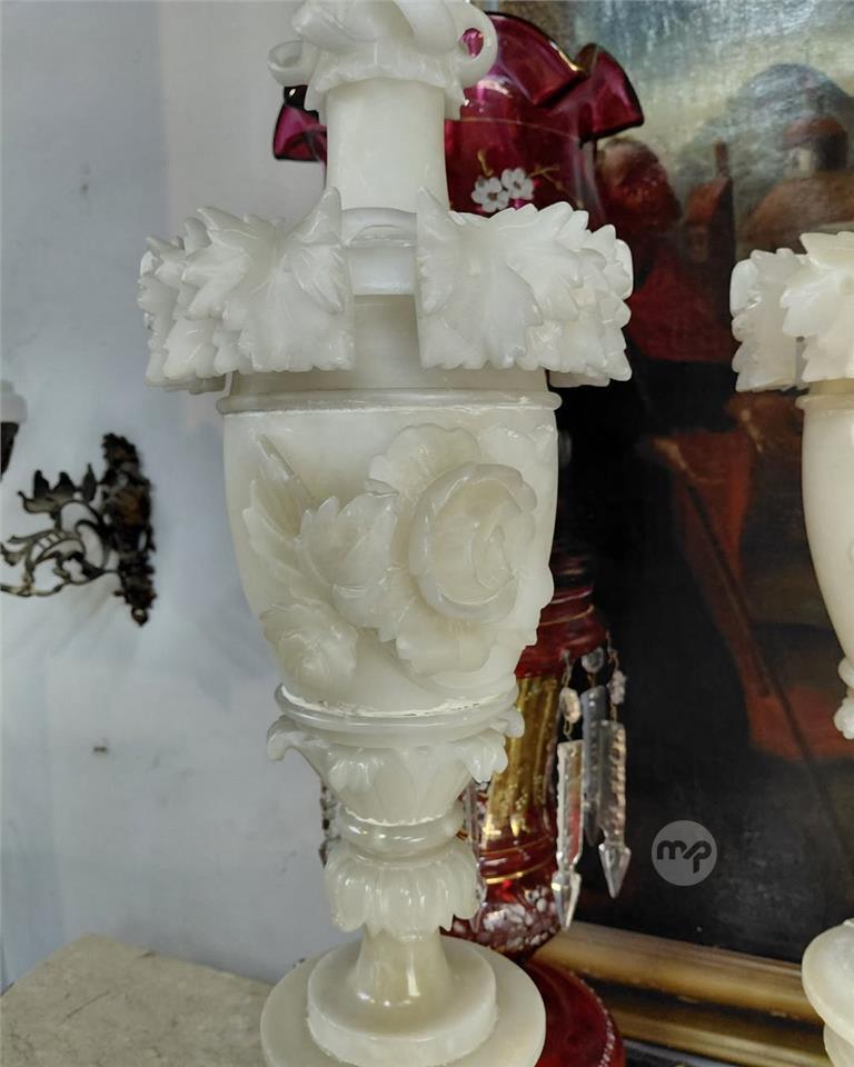 Pair large,62 cms long , Antique Carved Alabaster vases Italian 19th century Intricate carvings of Roses and leaves Price of 450 euros both 99456526