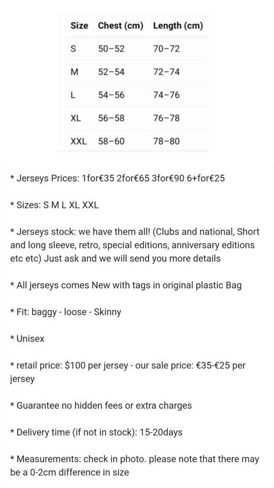* Jerseys Prices: 1for€35 2for€65 3for€90 6+for€25