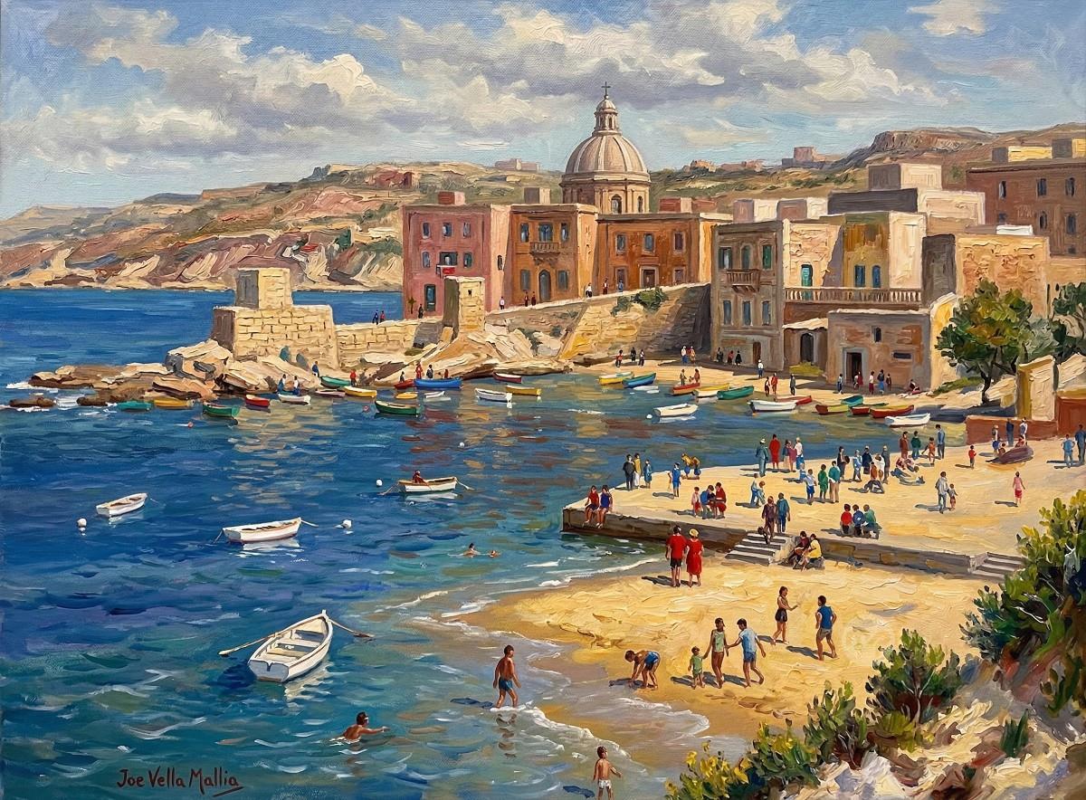 MARSASKALA LITTLE BAY --- ORIGINAL HAND PAINTING OIL ON CANVAS 70X50