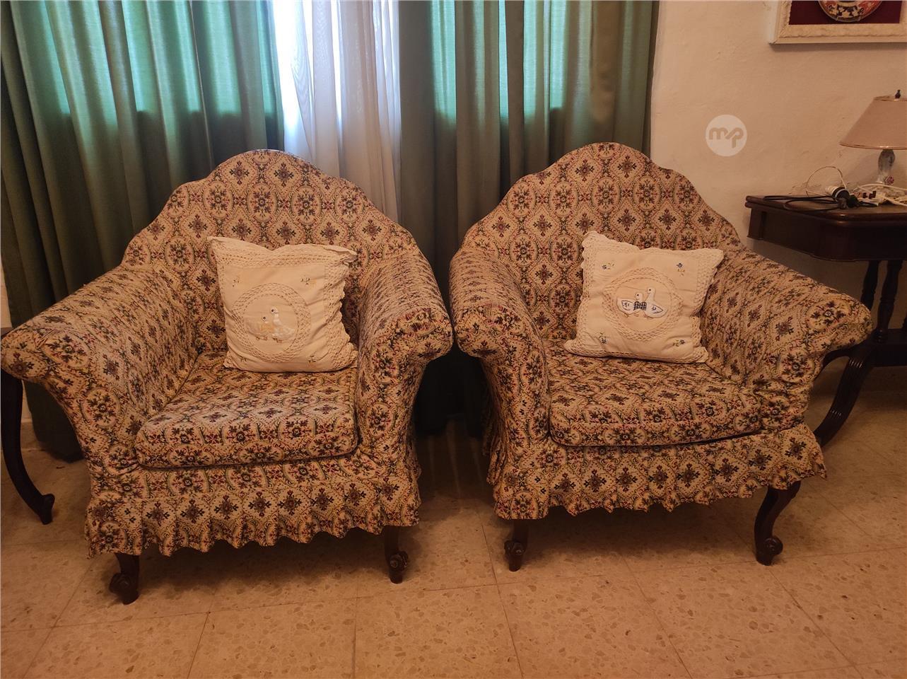 Classic Carved Wood Antique-Style Sofa and Chair Set