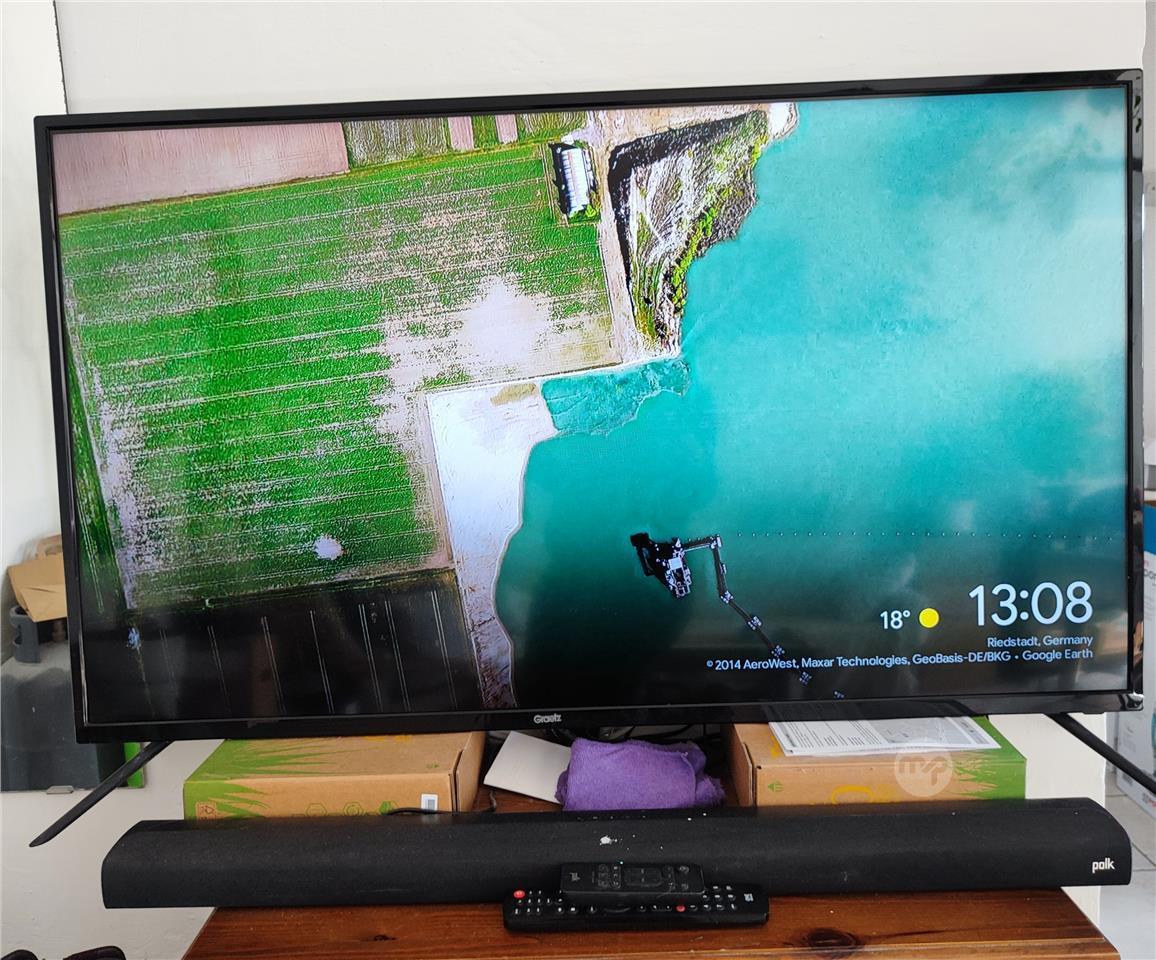 50" TV (not smart) for sale along with a soundbar and a bass.