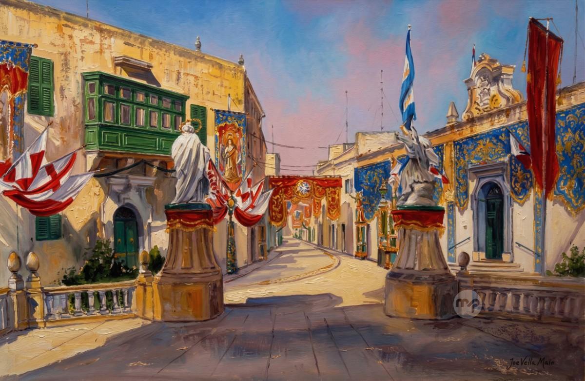 IL-FESTA TAR-RAHAL MALTA ---- ORIGINAL HAND PAINTING OIL ON CANVAS 70X50