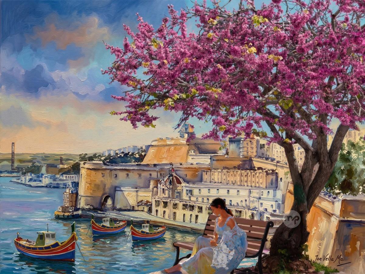 VIEW OF GRAND HARBOUR MALTA--- ORIGINAL HAND PAINTING OIL ON CANVAS 70X50