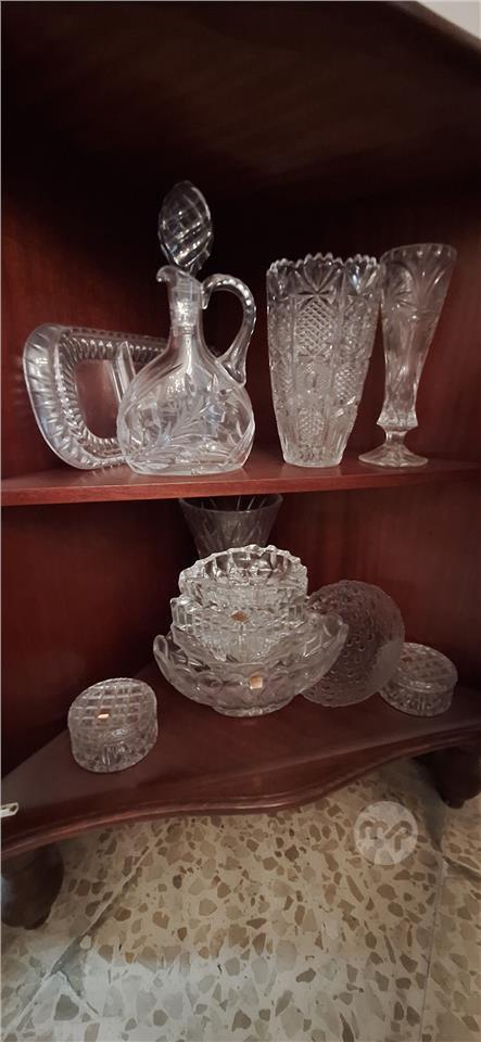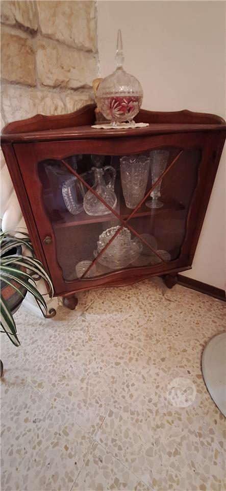 Beautiful vintage wooden display cabinet sold together with a collection of crystal glassware.