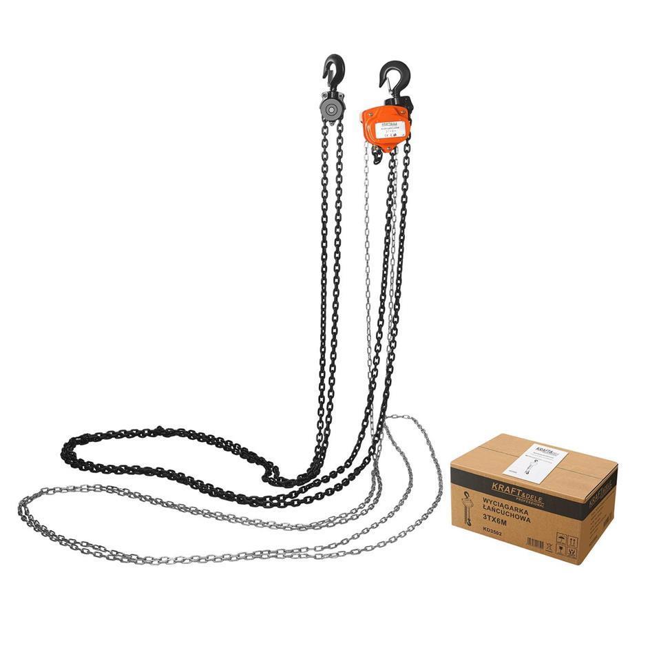 The KD3502 chain hoist is a robust, industrial handheld device designed for lifting and lowering heavy loads weighing up to 3 tons. Thanks to its durable mechanism and strong chain, it's ideal for workshops, production halls, warehouses, and construction sites. Its simple design and intuitive operation make it a reliable tool for everyday work.