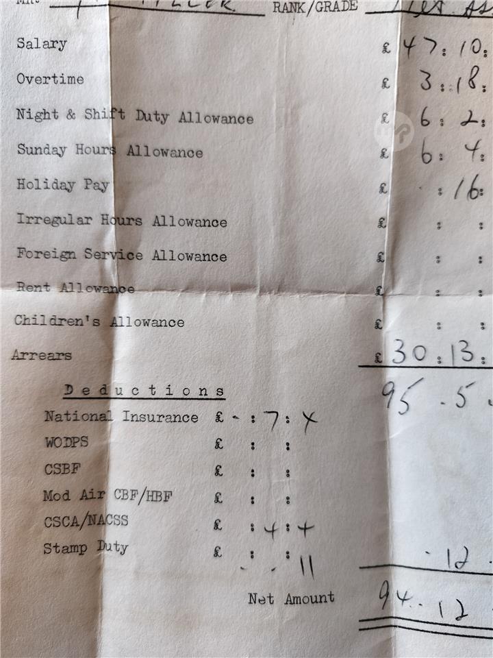 1969 Army Soldier Miller / Paper Salary / Bank / Naafi Paper / Airline / Trans Tiket