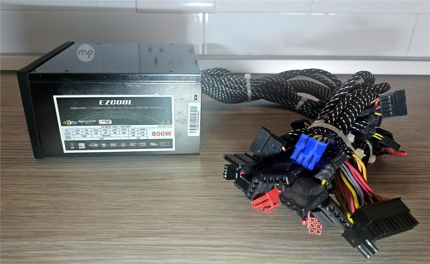 EZCOOL 800W ATX Power Supply Unit (PSU) – Fixed Cables, Tested & Working