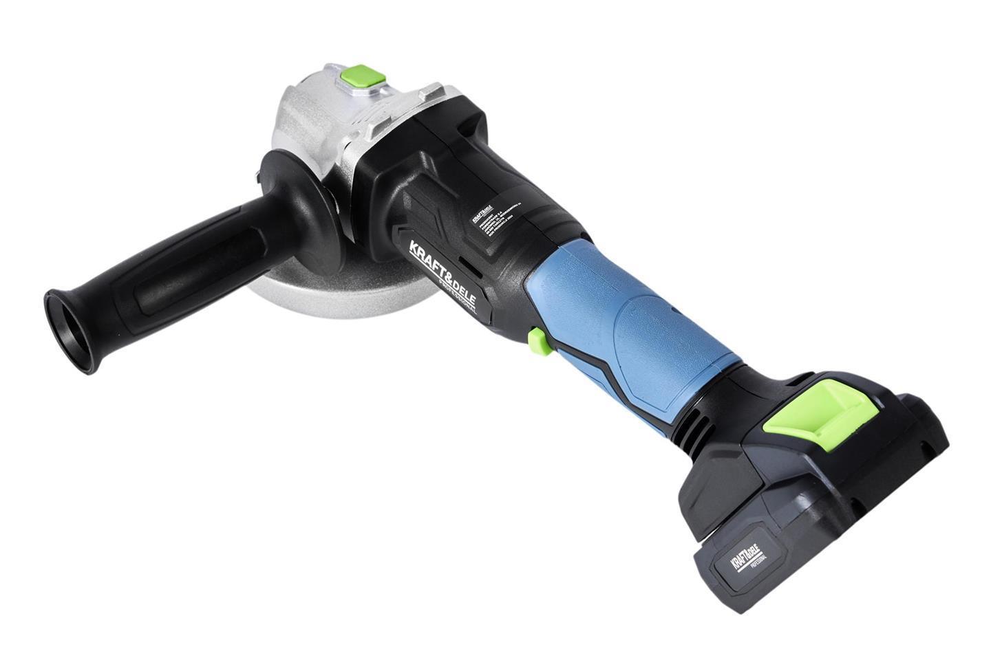 Professional cordless angle grinder by Kraft&Dele model KD3405 . This is an essential set for every DIY enthusiast and professional. The set is designed for cutting, grinding and polishing materials such as wood, concrete, plastics, ceramics, stone and many others.