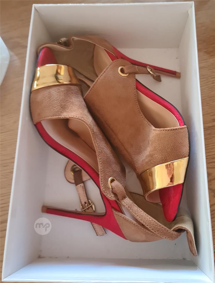 BRAND NEW 'NUBUCK' SANDALS WITH HIGH HEELS still in box.