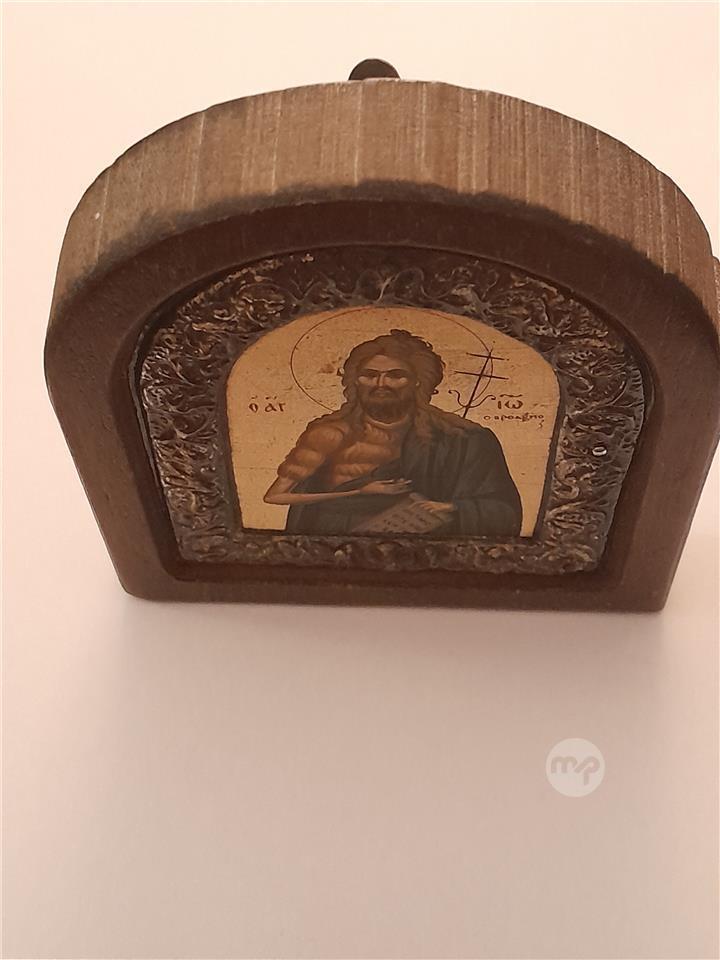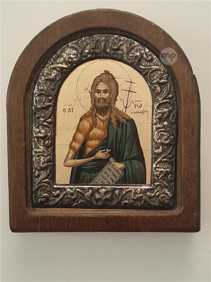 Saint John the Baptist Icon – Arched, Engraved Silver Gold & Wood