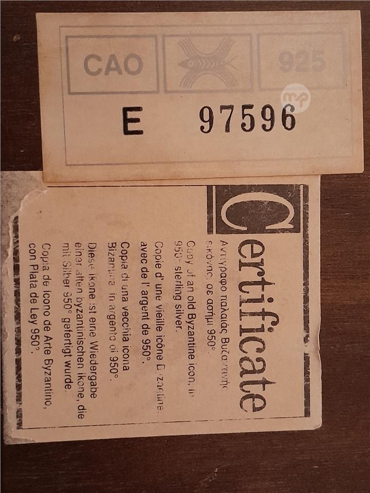 Arched top design with embedded gold & silver frame around the icon